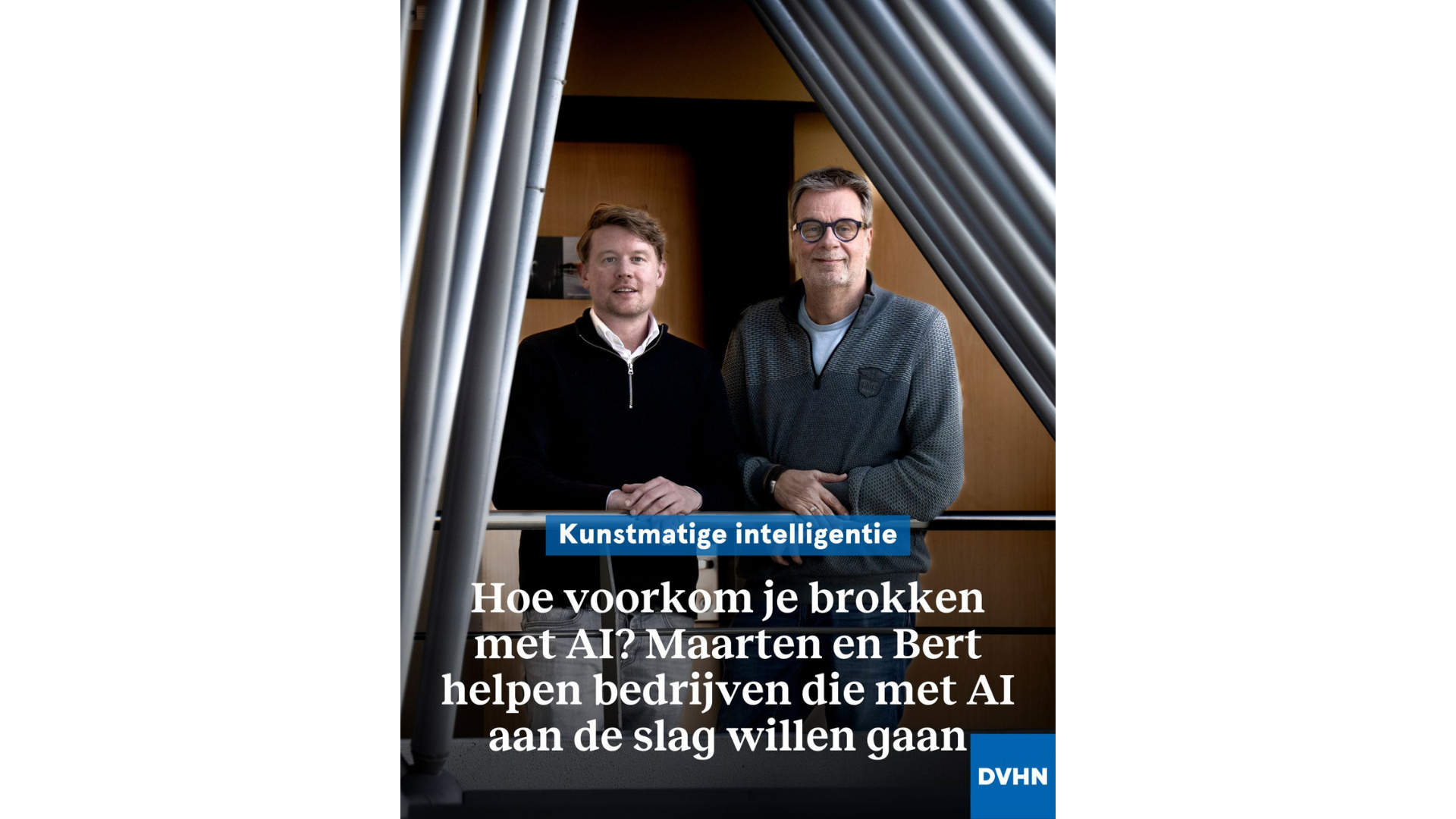 Maarten Oostland (40) en Bert Tukkers (65) helpen in nauwe samenwerking bedrijven die met AI aan de slag willen. Beiden hebben een eigen bedrijf, dat van Oostland heet ai-ify, een variant op Spotify. Tukkers zwaait de scepter over ICT-bedrijf Nexler. Waar Oostland vooral de organisatorische kant voor zijn rekening neemt, helpt Tukkers met technische oplossingen.